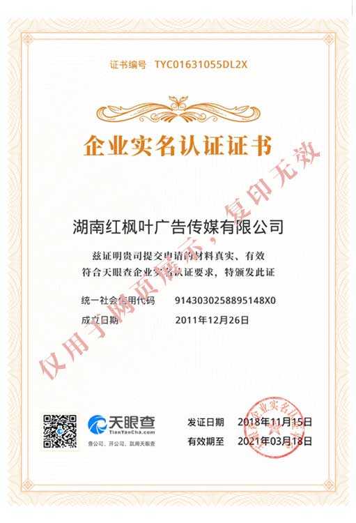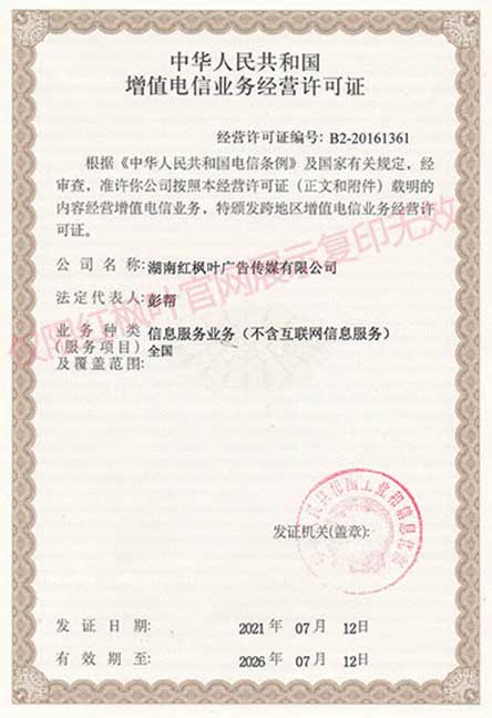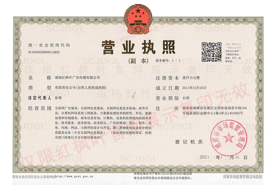 湖南紅楓葉傳媒營業(yè)執(zhí)照