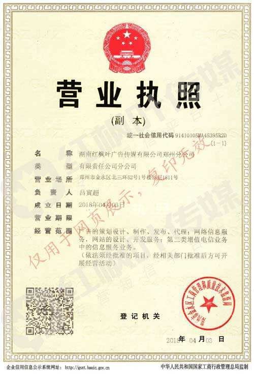 湖南紅楓葉傳媒鄭州分公司營業(yè)執(zhí)照