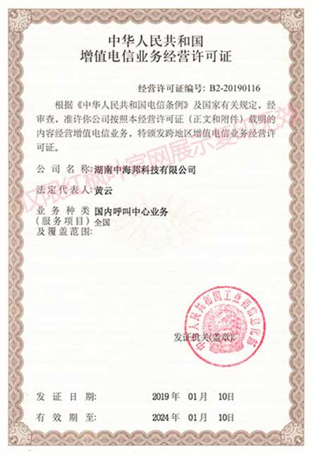 增值電信業(yè)務(wù)經(jīng)營許可證(國內(nèi)呼叫中心業(yè)務(wù))