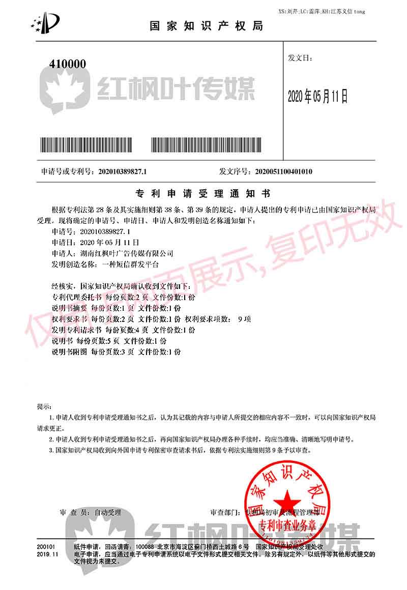 2020年8月1日,紅楓葉廣告?zhèn)髅綐s獲5G消息平臺(tái)2020年上半年“合作金獎(jiǎng)”